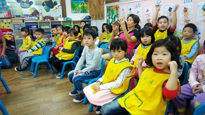 小朋友們專心聆聽講師說明安全教育